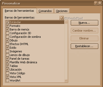 1 .En el menú Herramientas , haga clic en Personalizar y, a continuación, haga clic en la ficha Barras de herramientas. |