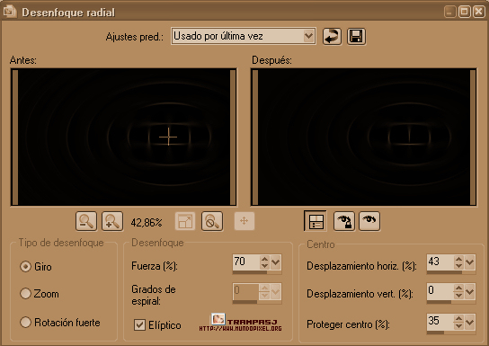 Capas / Duplicar. Ajustar / Desenfocar / Desenfoque Radial.