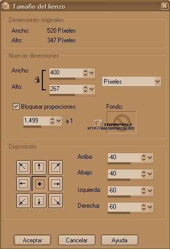 Selecciones / Modificar / Contraer / Números de píxeles 160