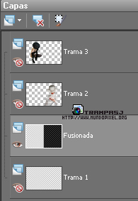 Nos colocamos en Trama 1. Capas / Duplicar. Ocultar, Trama 1, Trama 2, Trama 3.