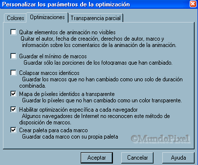 Lógicamente pueden haber otros tipos de como configurar el Animation Shop, pero esta es la más fiable que conozco, y la que mejor optimiza.... |
