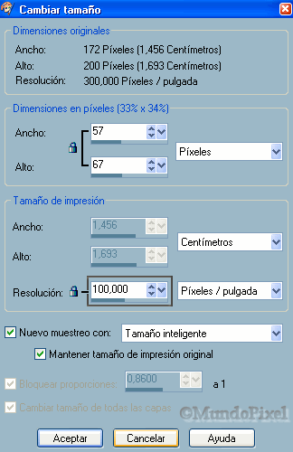Seleccionaremos MANTENER TAMAÑO DE IMPRESIÓN ORIGINAL , y le daremos una resolución de 100% , PIXELES/PULGADA. ![]() MANTENER TAMAÑO DE IMPRESIÓN ORIGINAL : (ejemplos)